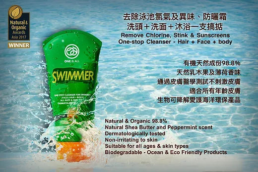 Hassle free one-stop cleansing and shampooing product, no need to carry extra shampoo, body wash, facial cleanser, etc., easily pack your swimming gear