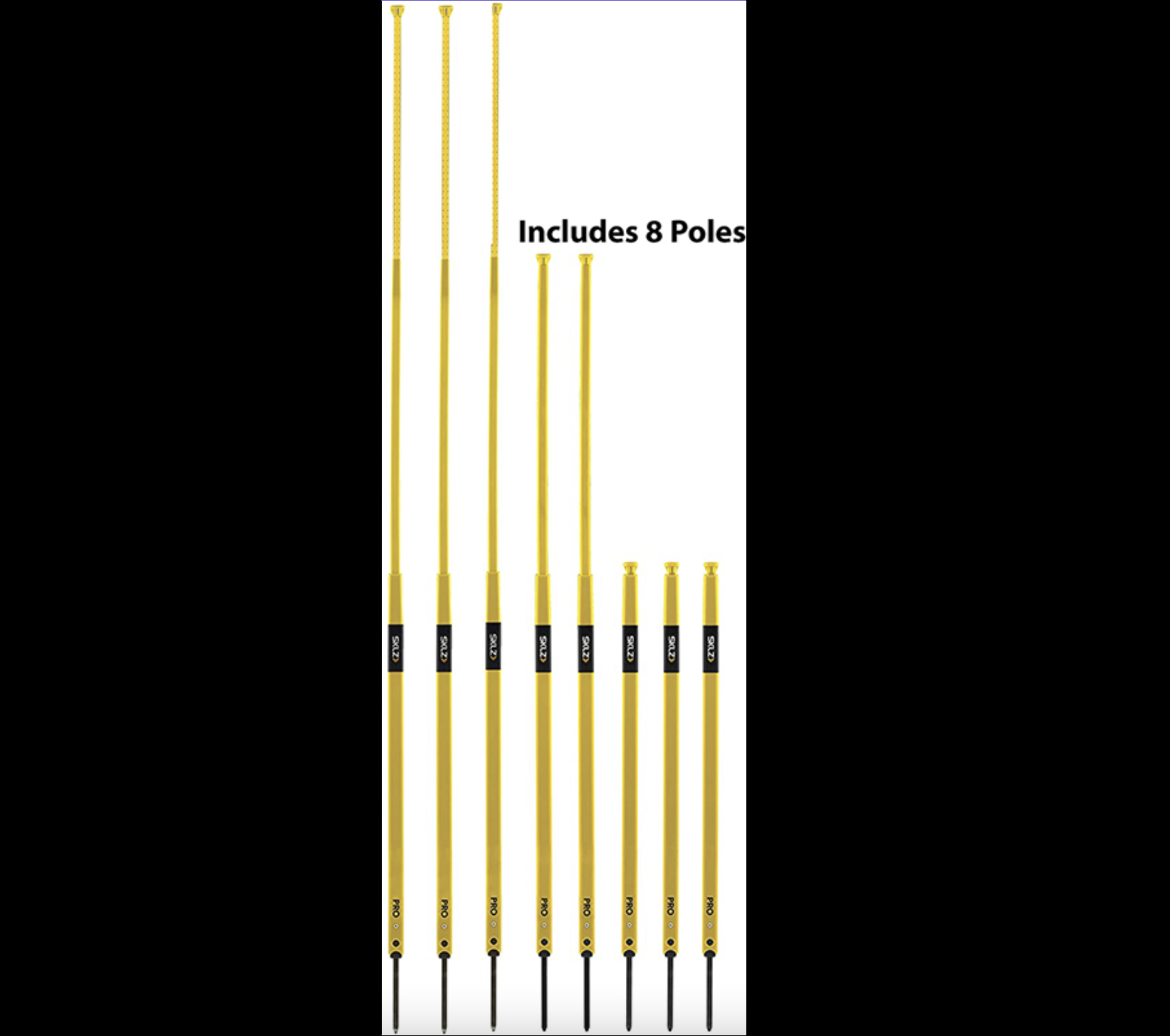 Product contents: Includes 8 agility poles with protective cap, 125mm detachable spikes, and carry bag