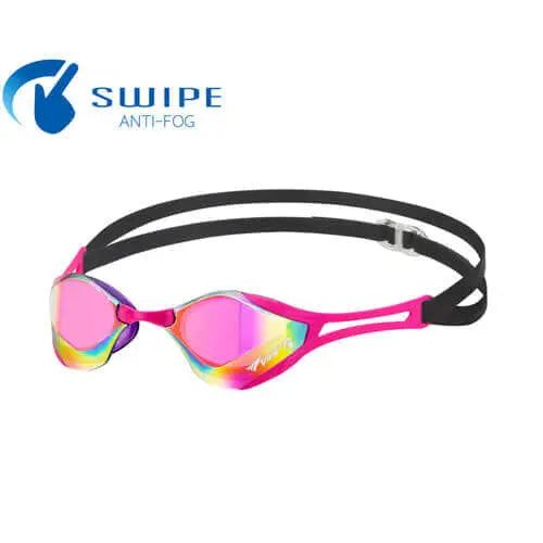 New swimming goggles with SWIPE ANTI-FOG technology. “SWIPE ANTI-FOG” can clean the lens by a few finger swipes and clear vision will be restored. Compared to other goggles, the new SWIPE goggle anti-fog lasts 10 times longer.