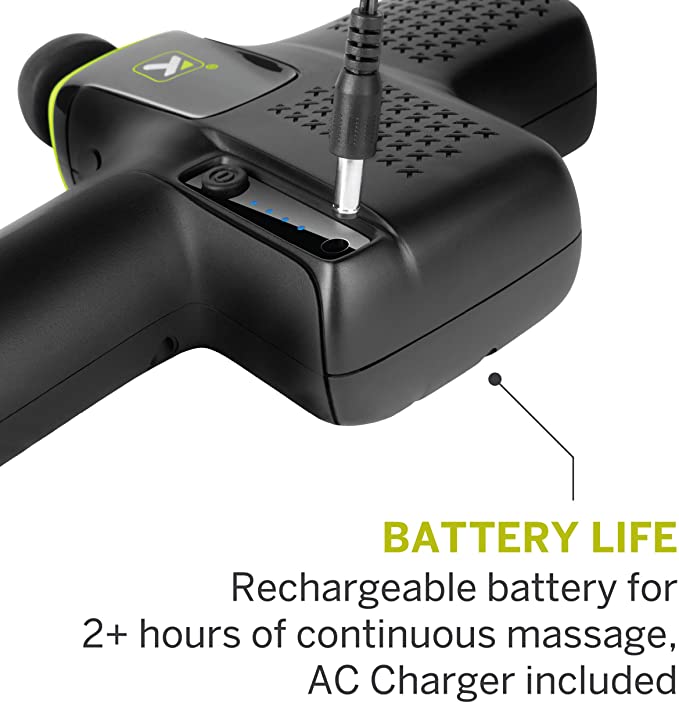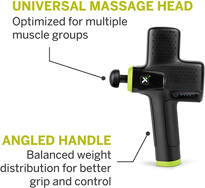 ● Universal massage head is optimized for use on multiple muscle groups to increase blood flow, improve range of motion, and accelerate recovery time