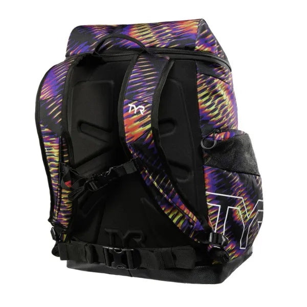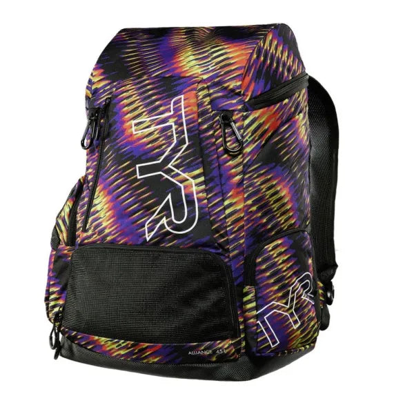 The TYR Alliance 45L Backpack - Star Spangled Print is designed with fabric technology to ensure a lightweight feel and durable, water-resistant construction.