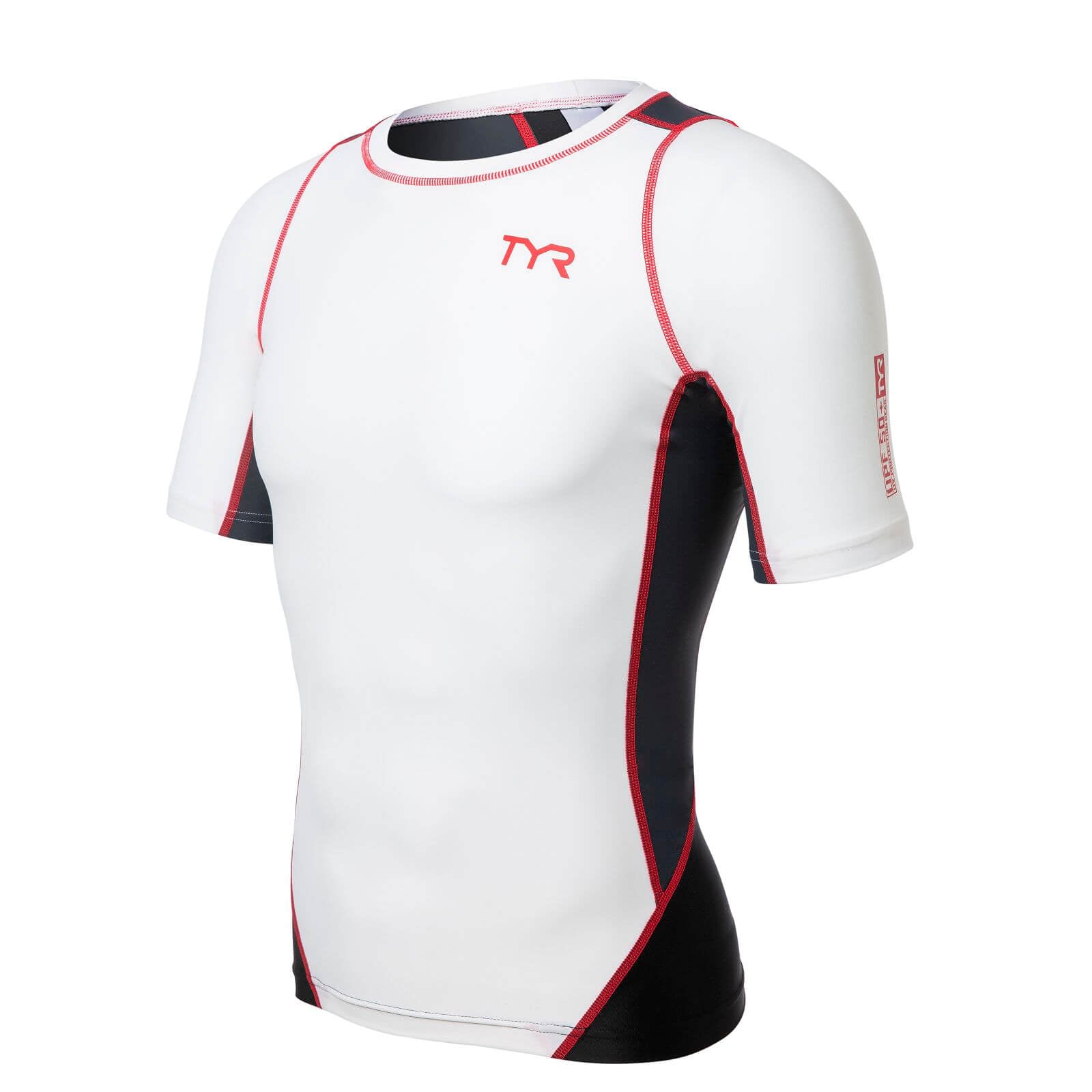 TYR men's personal sunscreen swimsuit is constructed with our advanced weaving technology, which is stretchable, restorative and durable. This comfortable sunscreen swimming top is equipped with a special compression webbing to increase blood flow and maximize muscle performance, beyond the boundaries of clothing.