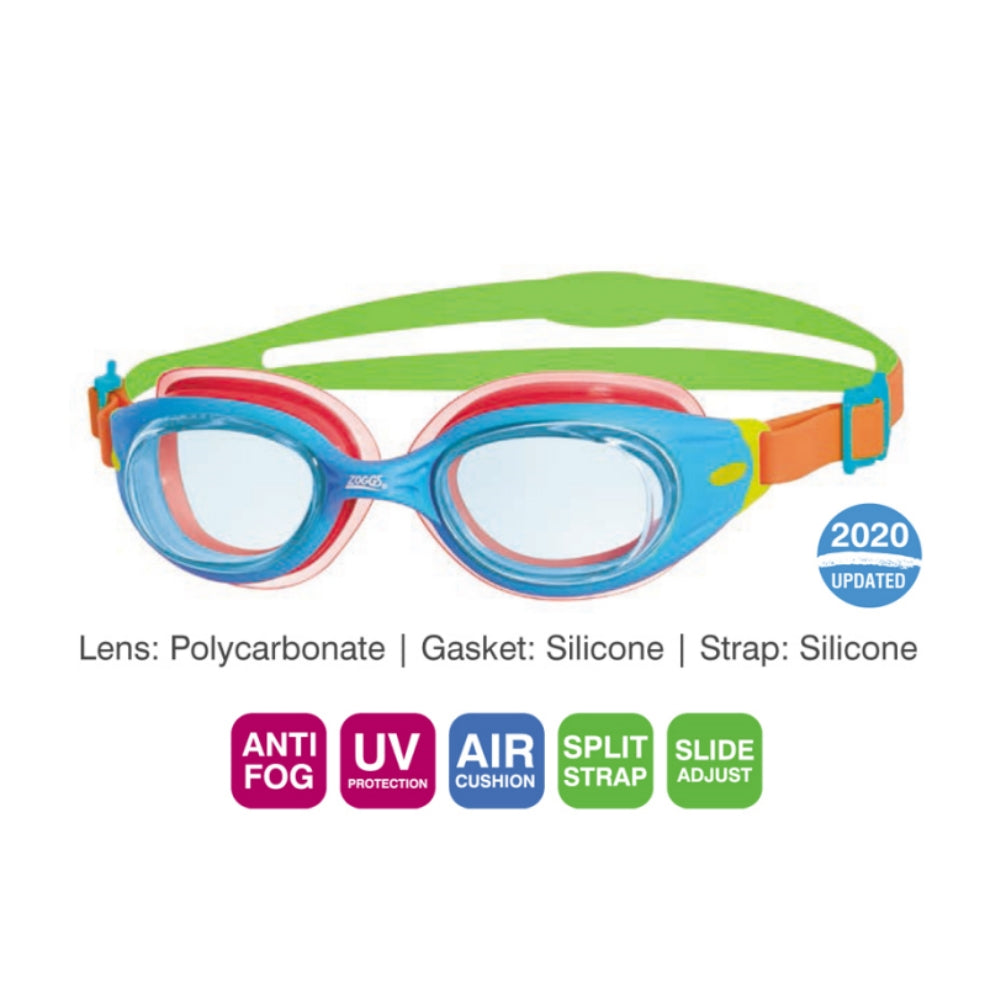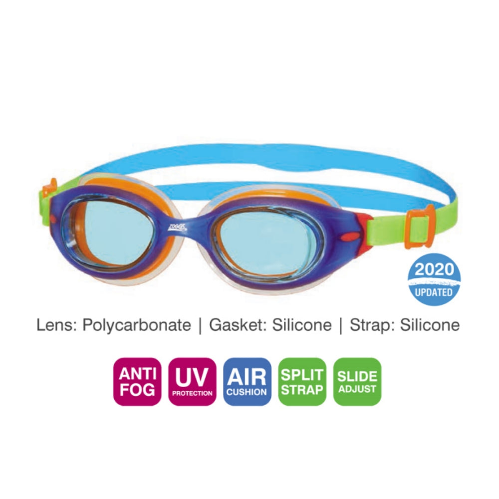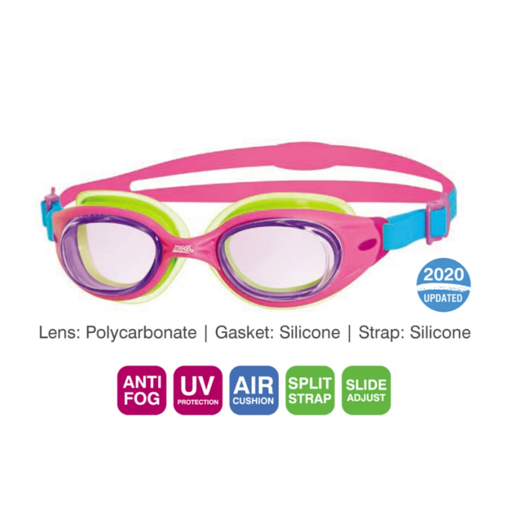 Our Little Sonic Air goggles for kids up to 6 years are our first kids goggle with Air Cushion Technology - air filled gaskets provide a 'cushioned' seal which gives an 'almost not there' fit with significantly reduced marking around the eye. With maximum UV protection, easy adjust straps and our Fogbuster™ anti-fog these are the perfect goggle for kids as they learn to swim.