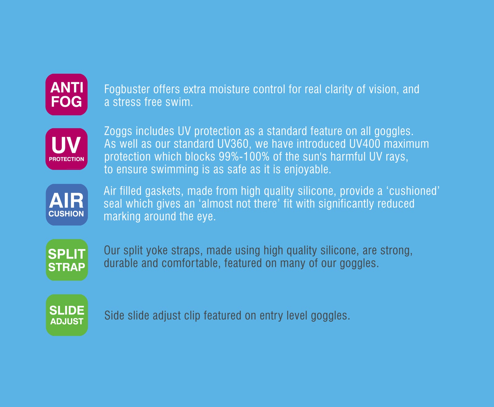 ● Fogbuster™ anti-fog lenses for fog free swimming