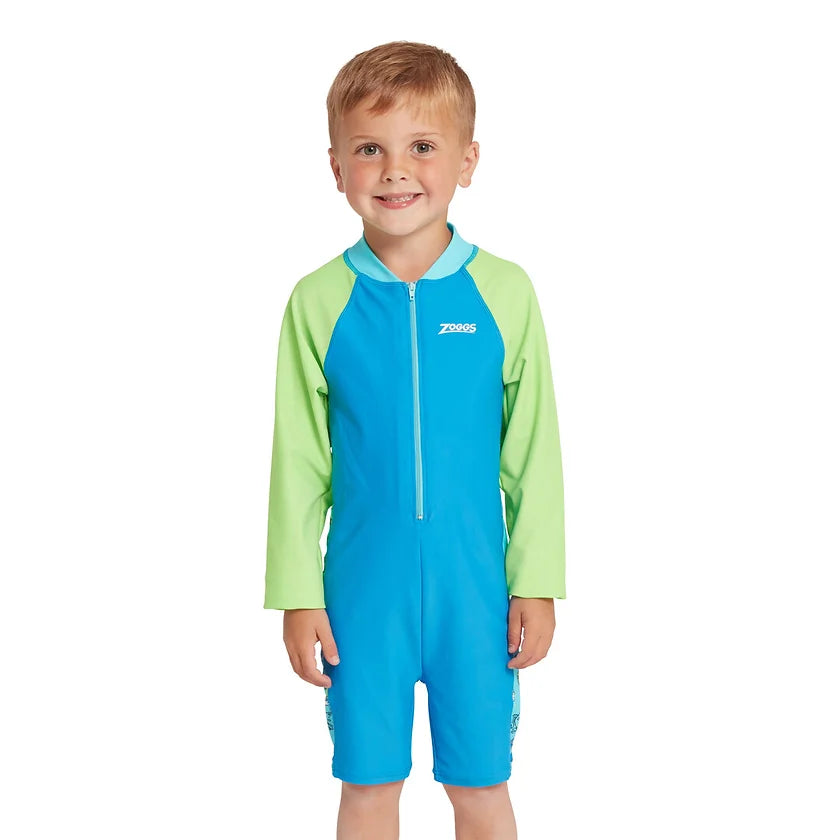 Zoggs Sun protection swimsuit, ideal for protecting your child from the sun's harmful rays.The fabric is designed to specifically protect the wearer from the sun’s UVA and UVB rays. These are the rays that cause skin damage. UVA rays cause skin aging