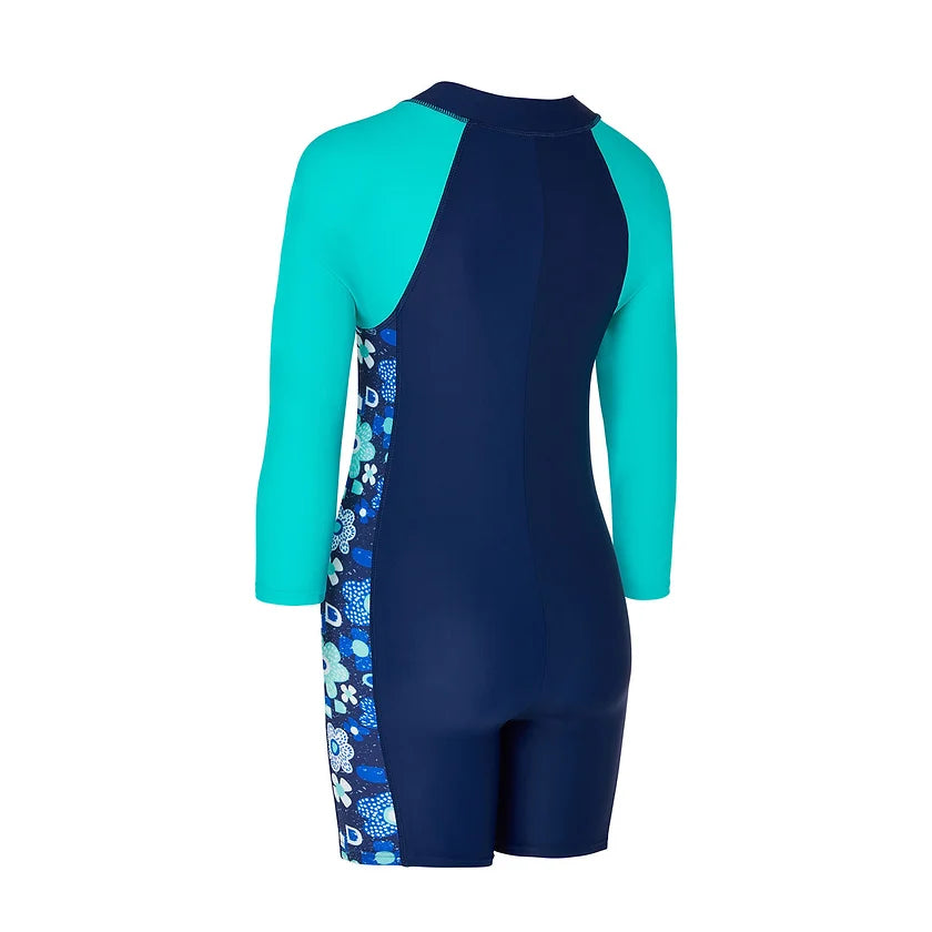 Zoggs Sun protection swimsuit, ideal for protecting your child from the sun's harmful rays.The fabric is designed to specifically protect the wearer from the sun’s UVA and UVB rays. These are the rays that cause skin damage. UVA rays cause skin aging