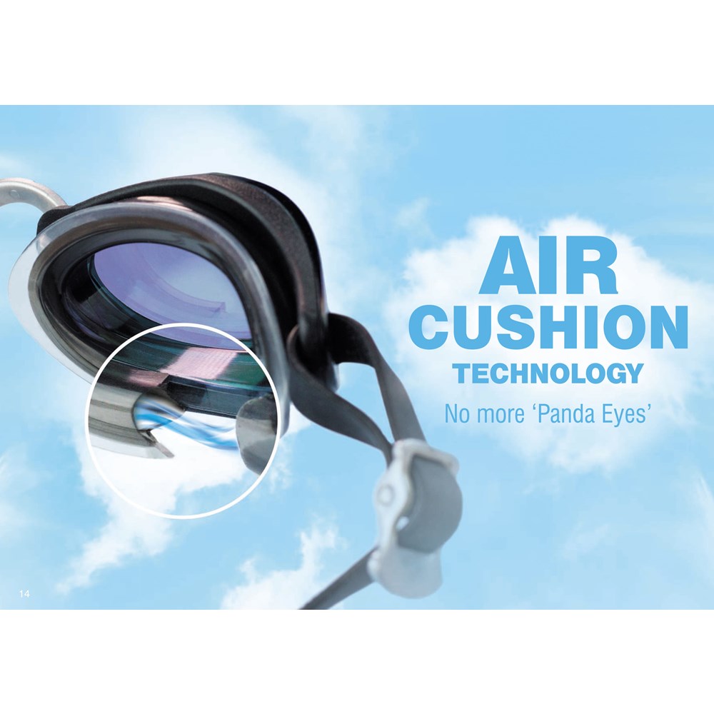 Air Cushion: Air filled seal provides an ultra light fit with visibility less marking around the eyes. Air filled seal provides an "almost not there" fit. Made from high quality silicone.