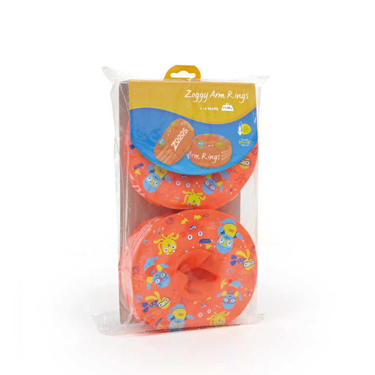 Zoggs Zoggy Arm Ring swimming armbands for kids feature dual buoyancy functionality with separate Easy Inflate(tm) non return safety valve, allowing buoyancy to be adjusted as wearer's confidence increases, the swimming armbands also feature a sponge insert for additional buoyancy. Made from durable Vylux(tm) which is not easily torn or punctured. An ideal learn to swim aid to help children develop their swimming ability & water confidence.
