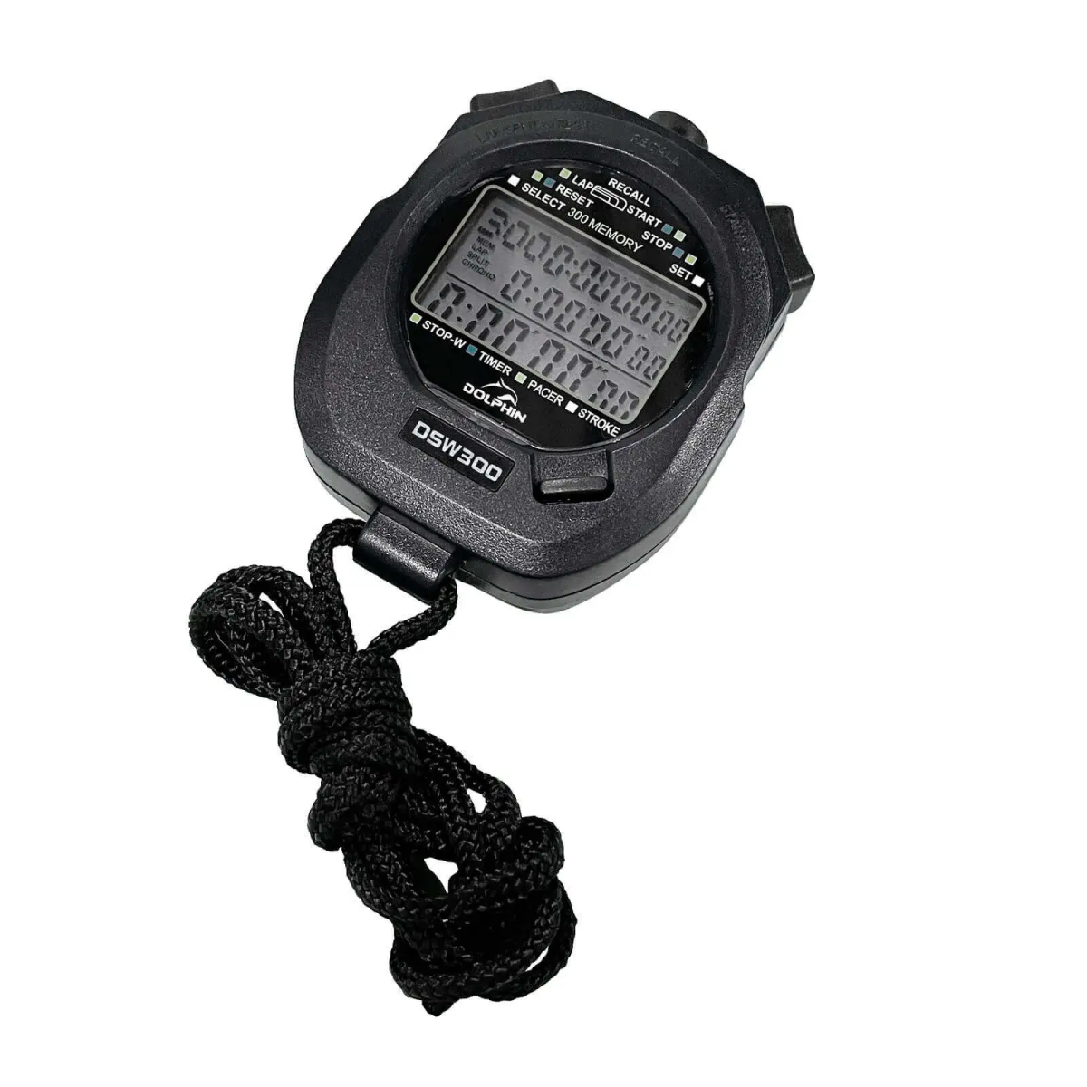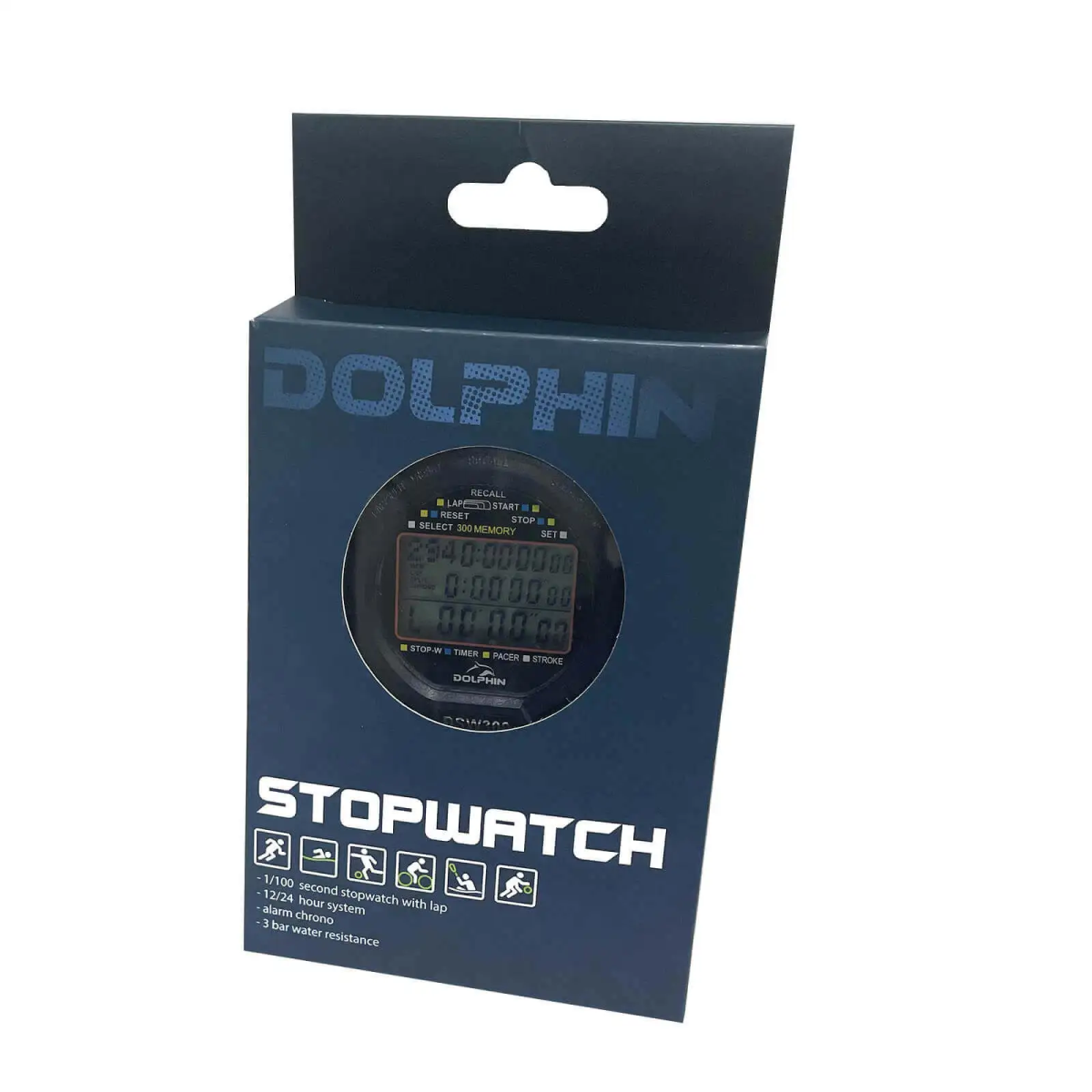 Dolphin為您提供多功能防水秒錶,防水性能高達3巴(30公尺)(靜態情況下,詳情請參閱說明書)。秒錶配備多種功能,包括最快/最慢/平均查詢,以及100組記憶儲存功能。