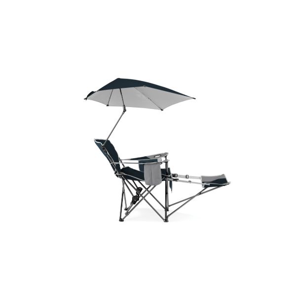 Sport-Brella 躺椅非常適合露營、體育活動、車尾聚會和海灘。使用易於調節的 3 位置躺椅放鬆身心,並使用 360 度頭頂雨傘提供保護。充分享受所有額外功能,如超寬座椅、隔熱口袋、杯架、開瓶器以及可調節或可拆卸腳踏板。